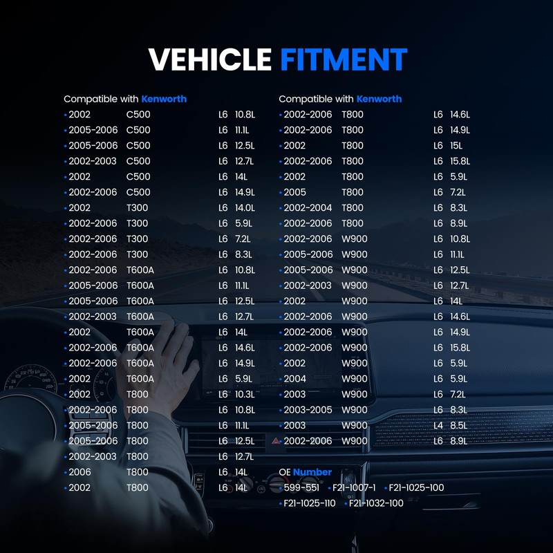 • [Vehicle Fitment]:Compatible with Kenworth 2002-2006 C500, 2002-2006 T300, 2002-2006 T600A, 2002-2006 T800, 2002-2006 W900.For more information about the fit, please check the picture or detail page.