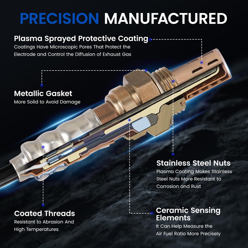 - High Performance: The SYKRSS oxygen sensor meets OE standards, and Front/Back/Upstream/Downstream compatibility; is made of stainless steel and high temperature resistant materials and is installed in the vehicle exhaust pipe to accurately detect air mixture and engine combustion conditions, optimizing engine performance and saving fuel consumption