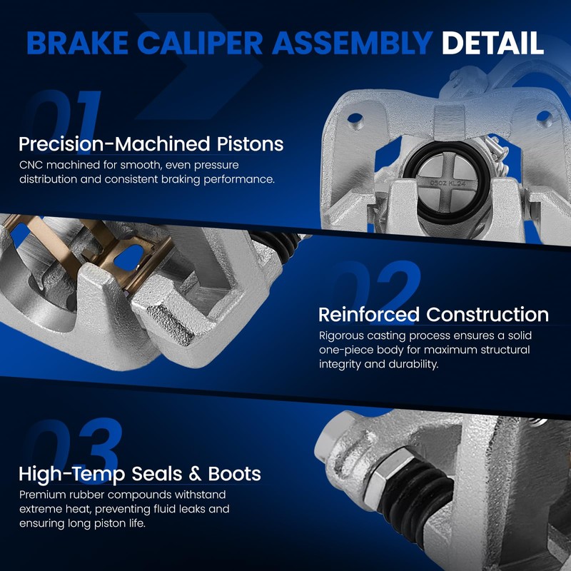 - [ Outstanding Braking Performance ] - SYKRSS Brake Caliper Assembly is made of high-quality cast aluminum alloy materials and features anti-corrosion processes. It not only offers lasting reliability and durability but also provides outstanding braking performance, providing you with a quiet and comfortable driving experience.
