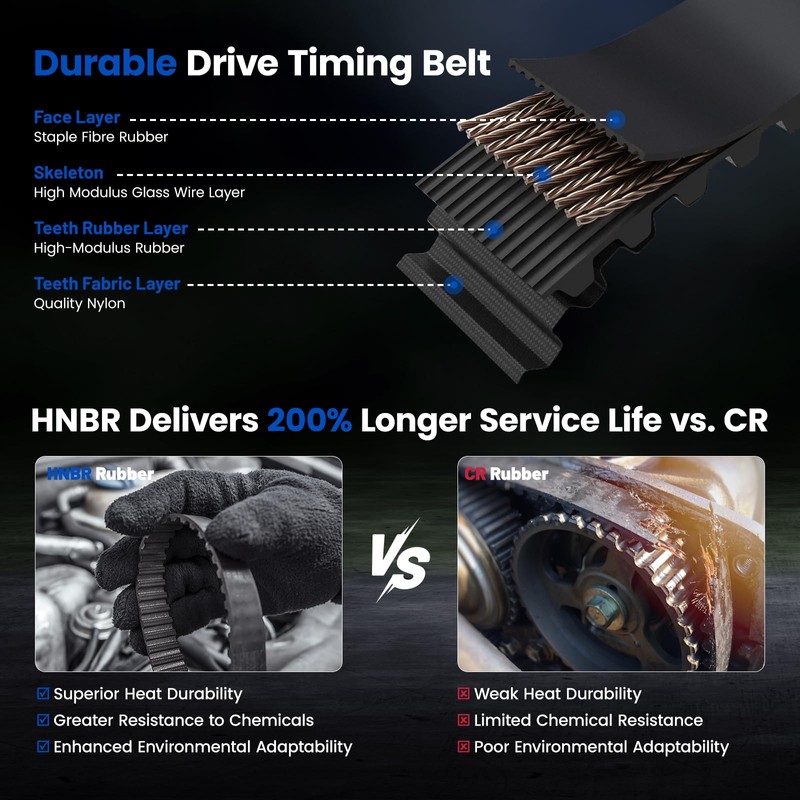 - [Perfect Engine Sync & Longevity]:Ensure reliable engine operation with this complete timing belt kit. Featuring premium components (belt, tensioners, pulleys), it maintains precise valve timing for smooth performance and protects against premature wear. Precision-engineered for durability and correct fitment, this essential kit safeguards your engine's longevity and efficiency when replaced per manufacturer specifications..