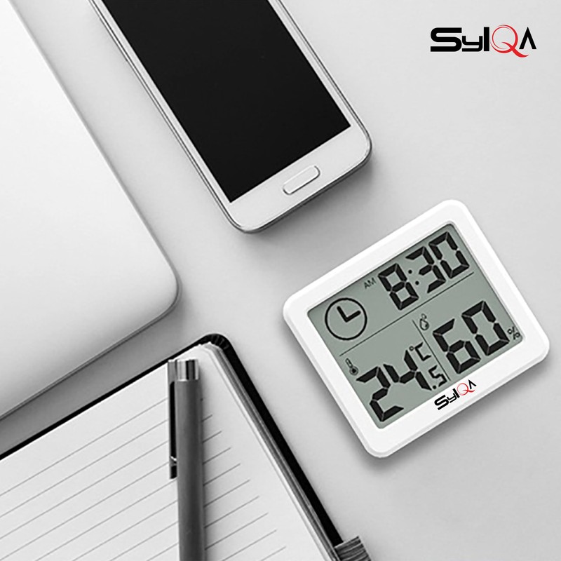 SYLQA Room Thermometer with Clock - Smart Mini Thermometer & Hygrometer -Digital Room Humidity and Temperature Monitor with Easy-to-Read Display - Perfect for Home, Office, Nursery, Greenhouse