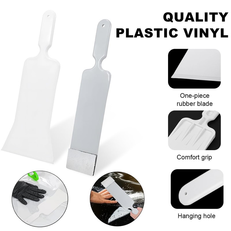 Sylvil 2 PCS Bulldozer Squeegee, Long Handle Flat Glass Tinting Tools for Automotive Front & Back Window, Plastic Wrapping Windshield Paddle Squeegee for Vehicle Cleaning, Car Accessories (Gray+White)
