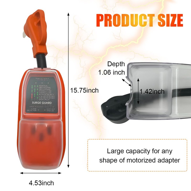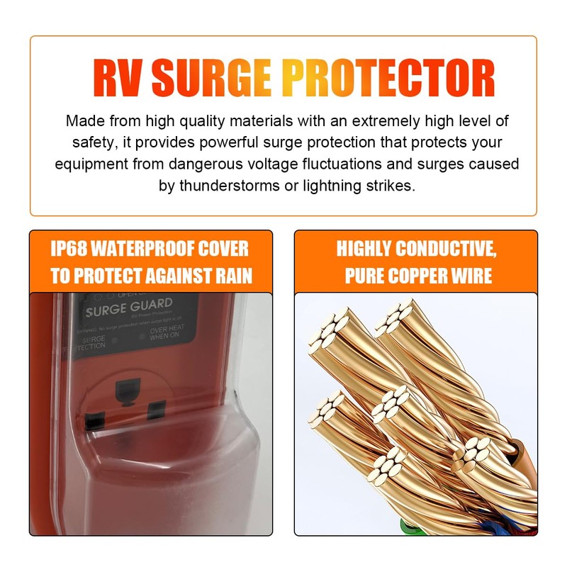 - 【Thoughtful Design】: Our RV surge protectors are designed with an easy to unplug waterproof cover. It is rainproof, windproof and withstands all kinds of harsh weather, effectively reducing the risk of short-circuiting and able to provide all-round protection to the protector.