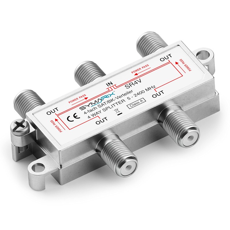 SYMARIX SR4V SAT & BK - 4-Way Splitter with DC Passage - UHD - Single Cable / SCR / Unicable Suitable - Splitter / Switch - for - DVB-S2 - BK - DVB-T2 - FM/DAB - Fully Shielded Shielding Rate ≥ 110 dB