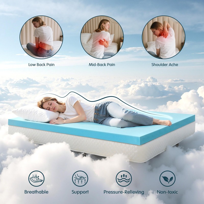 - ▶Breathable and Cool Design: Special gel-infused technology keeps the topper breathable and cool, helping you stay comfortable all night without overheating
