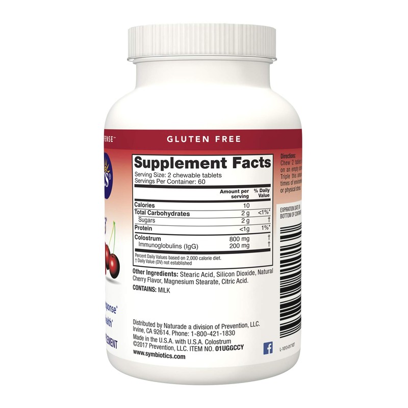 - SYMBIOTICS COLOSTRUM CHEWABLES PLUS: Support your immune system with the #1 Colostrum Brand in the U.S. Our gluten-free formula caters to individuals with dietary restrictions, ensuring everyone can enjoy the health benefits. Moreover, they're kid-friendly, thanks to the delicious Wild Cherry flavor that makes them enjoyable for both adults and kids. Manufactured in the USA, our products promise quality and ease of consumption for a healthier you.