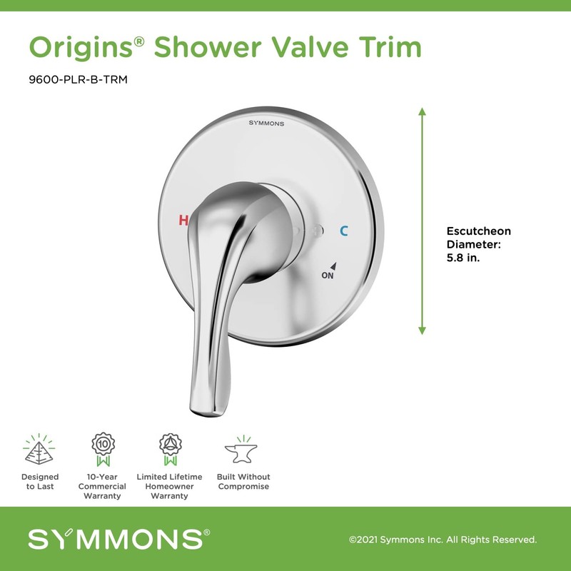 Symmons 9600-PLR-B-TRM Origins Shower Valve Trim in Polished Chrome (Valve No...