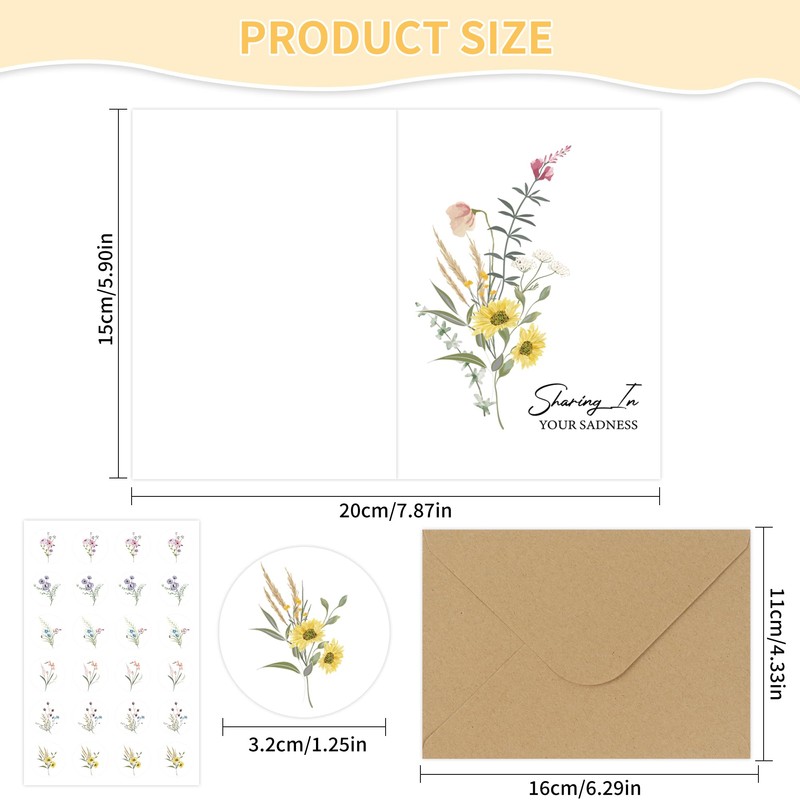 - Set Includes: 24 sympathy cards measuring 7.9 x 5.9 inches, 24 white envelopes, and 24 matching stickers, with 6 different designs. The cards provide ample space for you to write personal messages to express your care