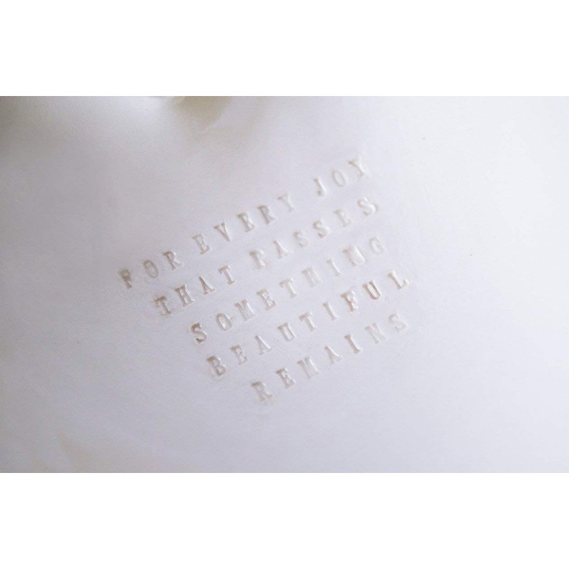 • It is completely handmade, fired in a kiln, glazed and kiln fired again. The text on the bowl reads: For every joy that passes Something Beautiful Remains.