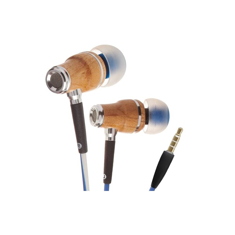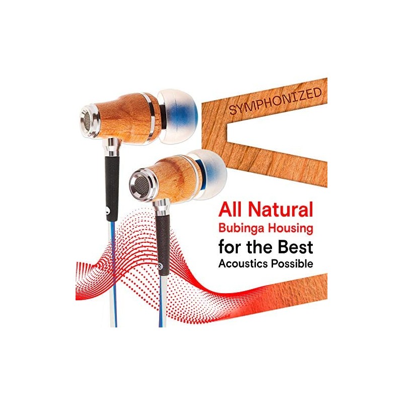 Symphonized NRG X Earphones Wired with Mic -Wood Earbuds with Microphone, Stereo In Ear Headphones for Computer, Android, PC & Laptop, Noise Isolating Ear Buds 3.5 mm Jack, Ear Phones Corded (Blue)