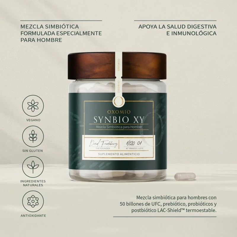 🦠💊 Synbio XY | 180 Cápsulas | Mezcla Simbiótica Avanzada para Hombres | Probióticos + Prebióticos | Salud Digestiva, Energía y Bienestar Masculino 💪🧠