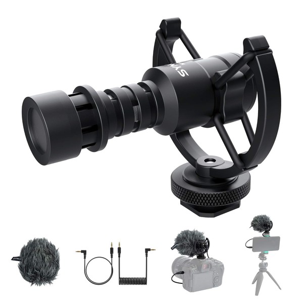SYNCO External Video Microphone, M1S Cardioid Directional Mini Shotgun Microphone with Shock Mount Windshield for DSLR Camera Smartphone