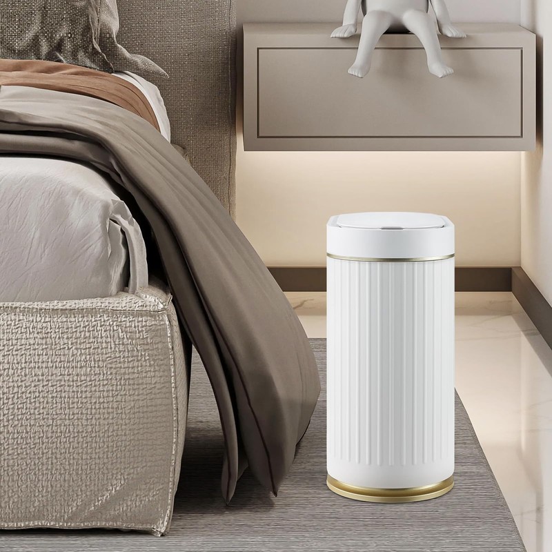 • Smart Sensor - Featuring infrared motion sensing, this automatic trash can offers a hands-free experience. Simply wave your hand above the sensor, and the lid opens automatically within 0.3 seconds. After 5 seconds of inactivity, the lid softly closes to conserve battery life.
