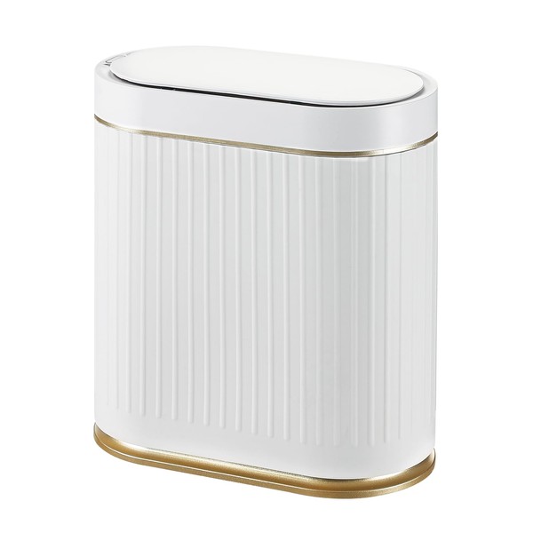 SYNCVIBE Bathroom Trash Can with Lid Automatic 2 Gallon Motion Sensor Garbage Bin, 7.5 Liter Smart Trash Bin with Stripes, Plastic Garbage Can, Narrow Trash Can for Bedroom, Office, Bathroom