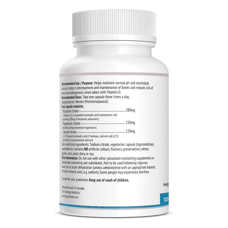 Synergy Holistics | Alkaline Synergy - Enhances pH Balance, Supports Electrolyte Stability, Reduces Body Acidity - A Top Premium Alkaline Supplement With Potassium, Calcium And Magnesium Citrate -120 Veg Caps