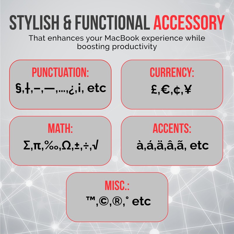 • Versatile & Convenient – Place it on your macbook or desk for quick access to essential MacOS symbols key combinations.