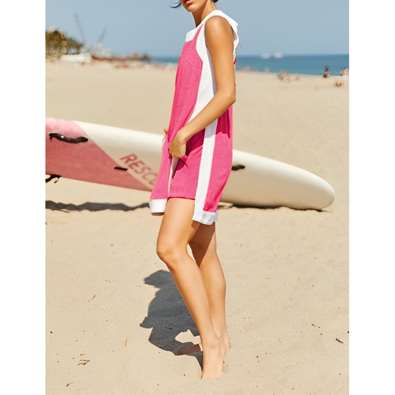 synound Women’s 2 Piece Sets Boho Color Block Dress Summer Casual Sleeveless Crewneck Tops Shorts Matching Set with Pockets Rose