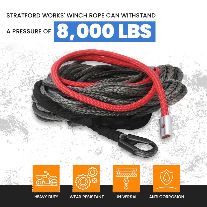 - Versatile Strength: Chemical and corrosion-resistant, this utv winch rope can withstand up to 8000 lbs, making it ideal for all-terrain vehicles (ATVs) and utility terrain vehicles (UTVs) in various challenging environments.