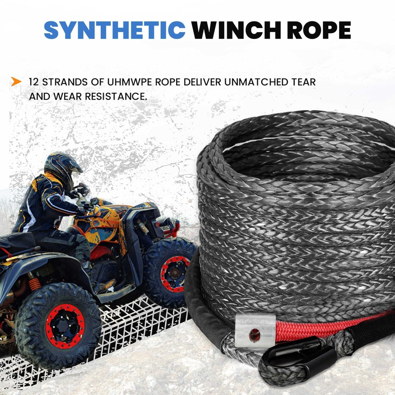 Our meticulously crafted 50 ft ATV winch cable, boasting a slender 1/4-inch diameter, stands out with a combination of durability and lightweight composition. Constructed from high-strength synthetic fiber, it offers a significant advantage over traditional steel winch cables, prioritizing safety without compromising on tensile strength.