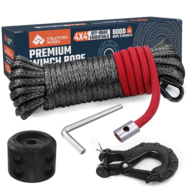 Synthetic Winch Rope ¼ inch x 50ft - Winch Cable Replacement with 8000 lbs Breaking Strength - Synthetic Rope Winch Cable with Hook & Rubber Stopper with L-Key for Off-Roader ATV UTV