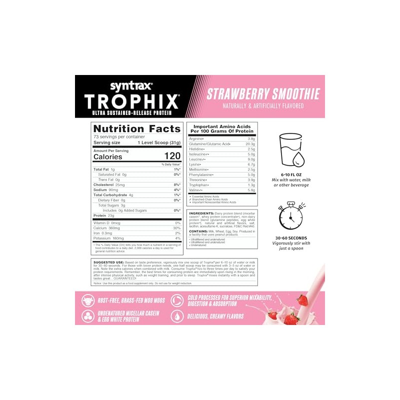 Syntrax Syntrax Nutrition Trophix, Ultra Sustained-Release Protein Blend, Strawberry Smoothie 5 lbs.
