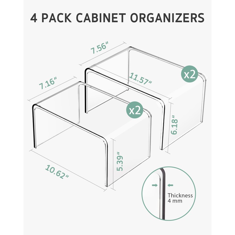 - Expandable Storage - This cabinet organizer measures 11.57 × 7.56 × 6.18 inches & 10.62 x 7.16 x 5.39 inches to fit your needs. It can be placed in the cabinet to increase storage space and can be used flexibly. 4-pack large capacity design maximizes your storage space, helping you neatly store kitchenware, office supplies, bathroom essentials, and more.