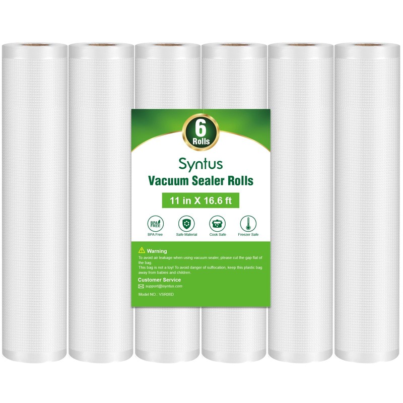 Syntus Vacuum Sealer Bags for Food, 6 Rolls 11" x 16' Commercial Grade Bag Rolls, BPA Free Food Vac Bags for Storage, Meal Prep or Sous Vide