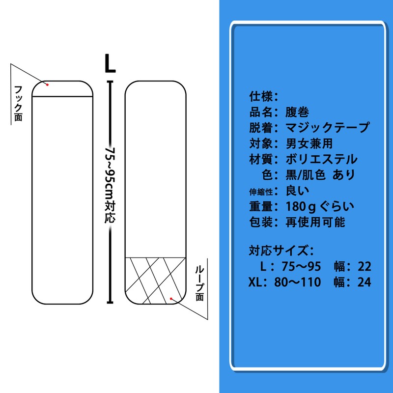 Suitable for men and women who have a circumference of about 29.5 - 37.4 inches (75 - 95 cm). (*The error in length does not affect the range of wear around the belly).