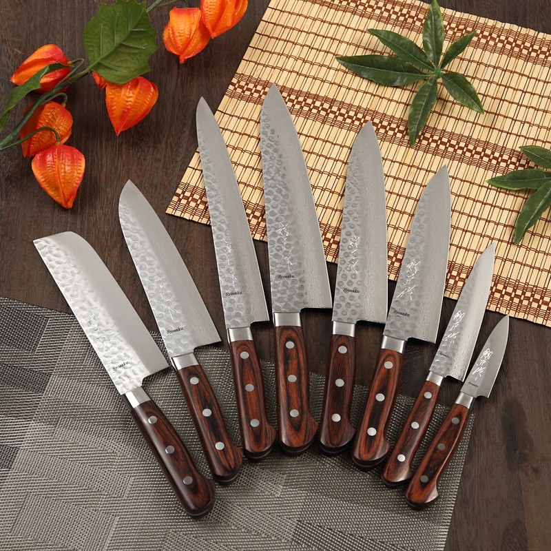 Syosaku Japanese Chef Knife Hammered Damascus VG-10 16 Layer Mahogany Handle, Gyuto 7-inch (180mm)