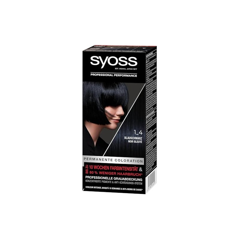 Syoss Color Coloration Hair Dye, 1_4 Blue Black Level 3 (3x 115 ml), Permanent Colouration for up to 10 Weeks of Colour Intensity and 70% Less Hair Breakage*