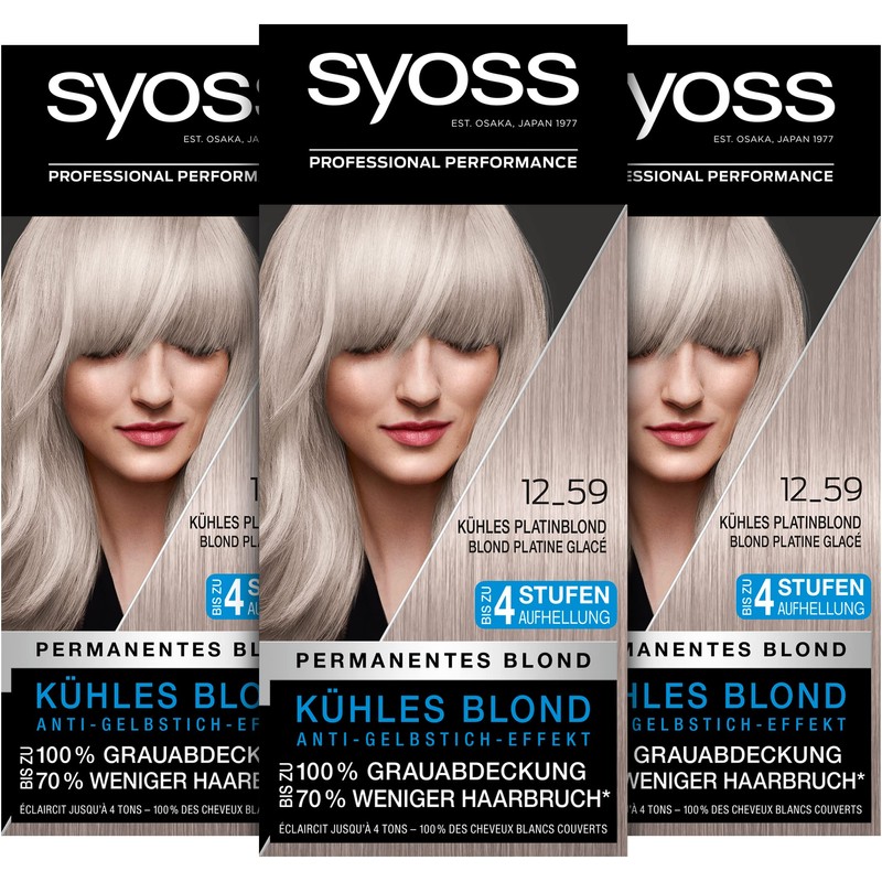 Syoss Colour Colouration, 12_59 Cool Platinum Blonde Lightening Level 3 (3 x 115 ml), Hair Colour with Anti-Yellow Tint Effect for Cool Blonde, Up to 70% Less Hair Breakage