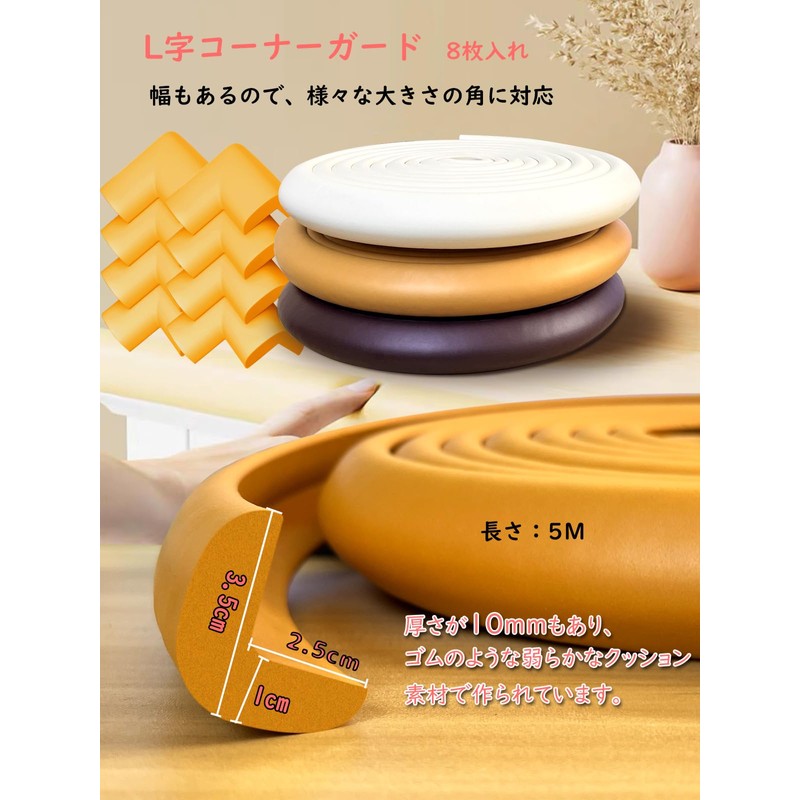 SYOUGO Corner Guard, Corner Cushion, Baby Injury Prevention, Nursery Recommendation, Total Length 12.4 ft (5 m) + 8 Squares, For Nursery Use, Wood