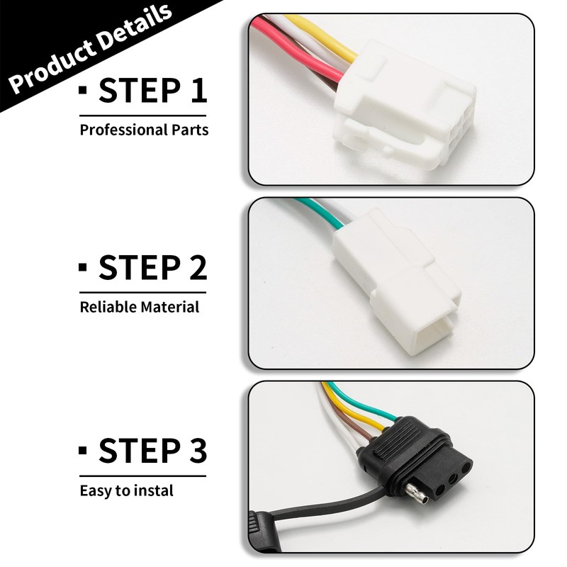 - Versatile 4-Pin Connector: Standard 4-way flat connector provides flexible power options for trailers, easily connecting trailer taillights, brake signals, and turn signals, enhancing trailer safety and convenience