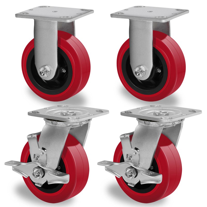 Syrantion 5 Inch Polyurethane Tread Caster Wheels Heavy Duty,Capacity 800-3200LB - 2 Brake & 2 Rigid