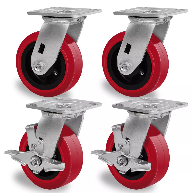- 【Widely Use】: Red plate caster have a wide range of uses, such as pallet trucks, inventory carts, trolleys, Toolbox, Workbench, Industrial Equipment and many other uses. store fixtures, and more. Also High-quality Caster wheel can drastically help you improve your Heavy Duty Caster rolling performance in the right environments.