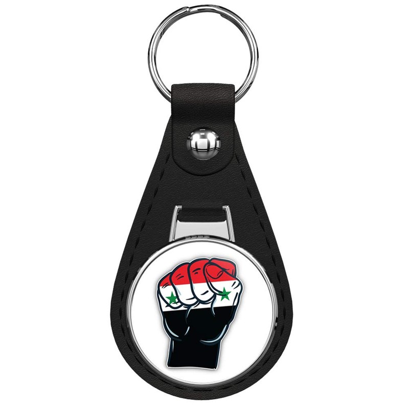 Syria World Flag Fist Keychain Black Premium Leather Key Chain with Key Ring