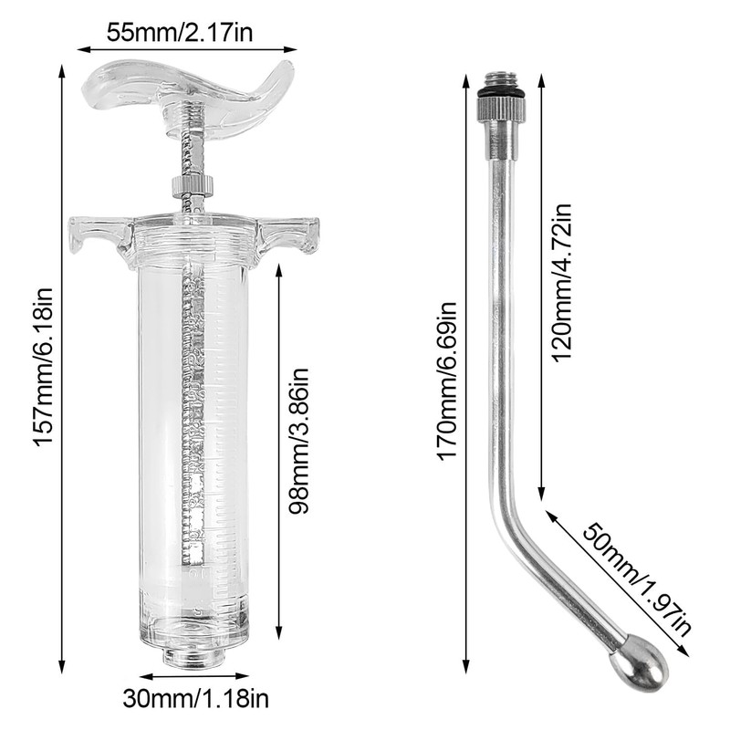 - Complete accessories: our syringe set group contains 1 injection with a capacity of 50 ml, 1 bending tube, 1 rubber ring and 1 iron ring.