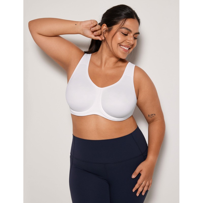 SYROKAN Women's Max Control Solid High Impact Plus Size Underwire Sports Bra for Large Breasts White 36DD