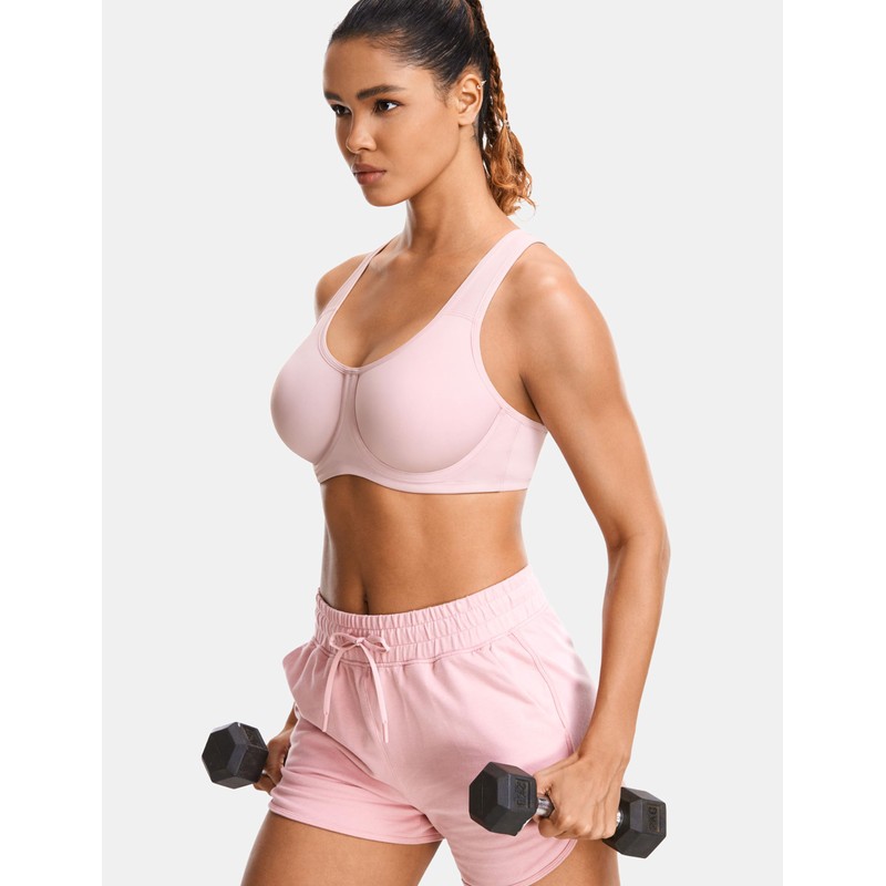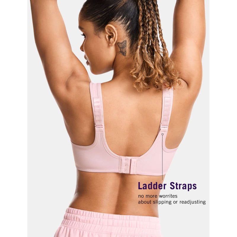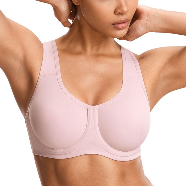 SYROKAN Women's Max Control Underwire Sports Bra High Impact Plus Size with Adjustable Straps Rhodonite Pink 44F