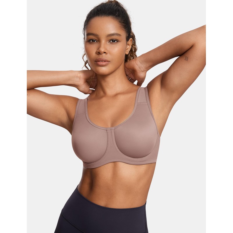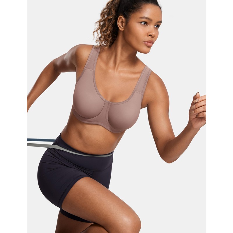 SYROKAN Women's Strong Support Sports Bra Large Breasts with Underwire for Large Sizes, Brick.