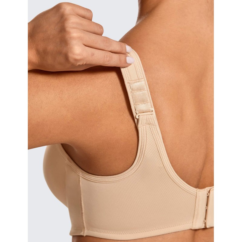SYROKAN Women's Underwire High Support Plus Size with Adjustable Straps Sports Bra Beige 48C