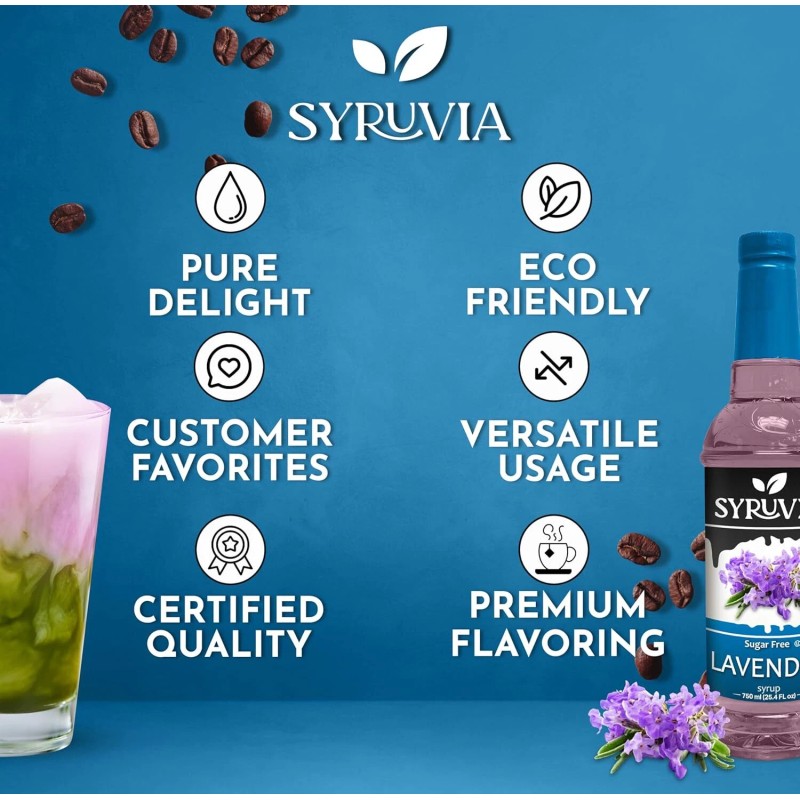 - Indulge in the gentle, floral notes of lavender without the guilt, thanks to Syruvia's Sugar-Free Lavender Syrup. Kosher and gluten-free, it's the ideal companion for elevating your drinks, desserts, and culinary masterpieces with a touch of natural sweetness