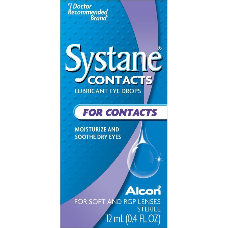 - Systane Contacts Lubricant Eye Drops moisturizes and soothes dry eyes caused by wearing soft and RGP lenses