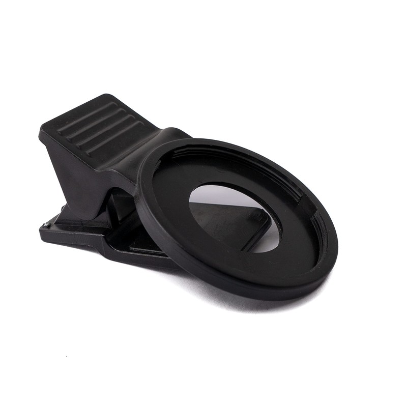 - Clip with screw-on +1-37 mm macro lens for (smartphone) photography work