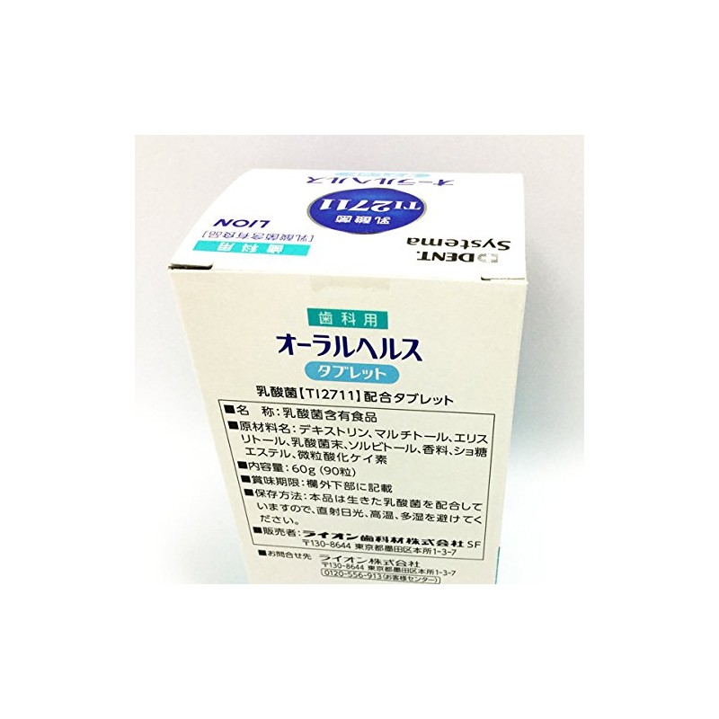 ※この度箱のマークがLS1→TI2711に変更になりました。 これはマークの商標権に関わる変更であり、LS1(愛称)とTI2711(正式名称)は全く同じ乳酸菌です。また、製品組成についても変更はございません。 LS1とは、お口の中に元々生息している乳酸菌です。 細菌バランス(悪玉菌と善玉菌)を整える働きをもっています。 毎日きちんと歯みがきしているのに、「口の中がネバネバする」「ニオイが気になる」という人も多いのではないでしょうか? 歯みがきだけでは対処の難しい、お口の悩み・・・ そこで有効になってくるのが”乳酸菌のチカラ”大人から子供までおいしく楽しく毎日続けられる ◎プロバイオティクスとは・・・ 抗生物質のように有害な菌と同時に有益な菌まで殺すのではなく 元々体内にいる有益な菌を増やして体の健康を守ろうというもの。 生きた乳酸菌LS1の摂取方法としては、LS1含有の食品を食べることですが・・・ 口腔内で長くとどまる事ができるタブレット状のものがイイと言われています。 簡単にどこでも摂取できるタブレットとしてお勧めです 【オススメの召しあがり方】 食後歯磨きしてから、1粒を噛まずに時間をかけてなめると効果的です。1日3粒を目安にお召し上がりください。 原材料名・・・デキストリン、マルチトール、エリスリトール、乳酸菌末、ソルビトール、香料、ショ糖エステル、微粒ニ酸化ケイ素 栄養成分表示 熱量198kcal、たんぱく質0g、脂質0g、炭水化物59g、ナトリウム5mg