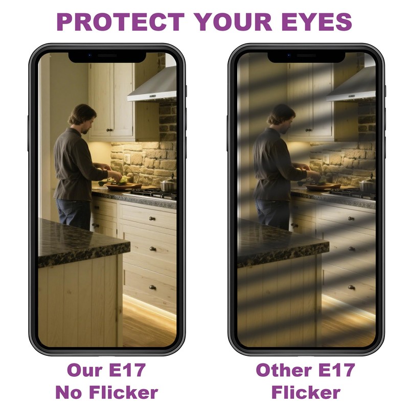 - 【Eye-care, flicker-free】E17 LED bulb instantly brightens to full brightness without flickering, better protect your eyes. makes the color of the object look vivid and natural