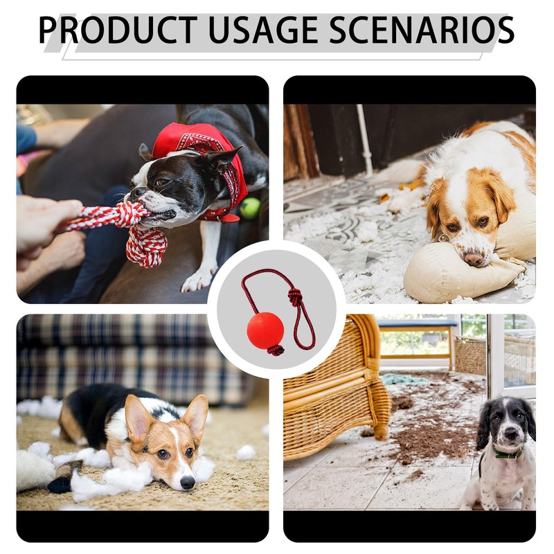 Durable Material: Made from sturdy materials to withstand chewing and pulling; The dog ball on rope is built to last through vigorous play sessions; Suitable for both small and large breeds.