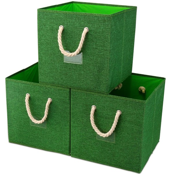 SYYOFUE Fabric Cube Storage Bins Green Storage Boxes Set 13x13x13 inch Baskets with Handle for Home&office organization