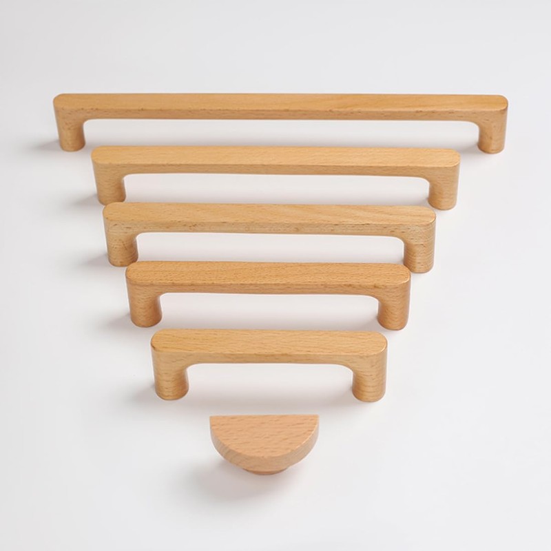 SYZOW Pack of 6 Cabinet Handles, Wooden Handles, Hole Spacing 96 mm Handle, Furniture Handle, Beech Wood Handle, Cabinet Doors for Cupboard, Drawer