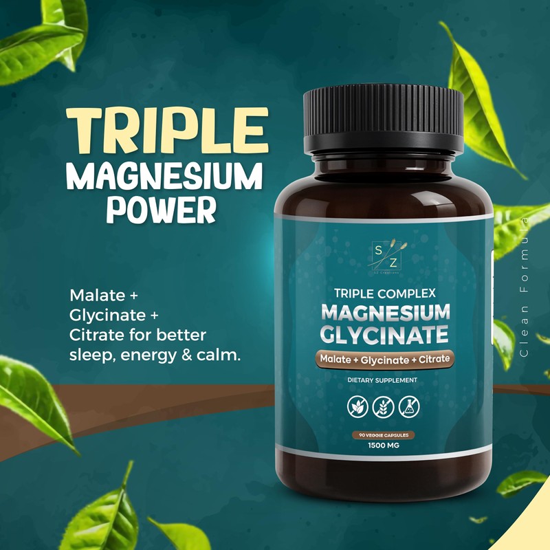 SZ Creations Magnesium Glycinate Sleep Support 3-in-1, Vitamin d Triple Complex 3000mg, 90 Veggie Capsules, Malate + Glycinate + Citrate Magnesium Citrate